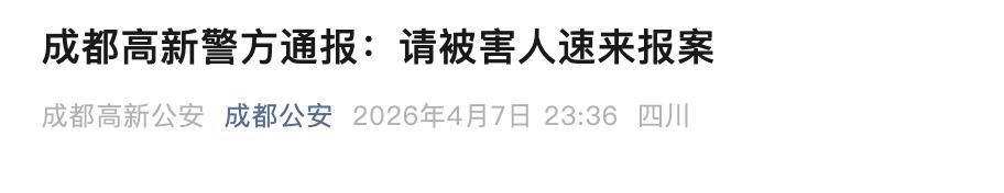 2026年4月7日,成皆市公安局高新分辩局发布警情通报: