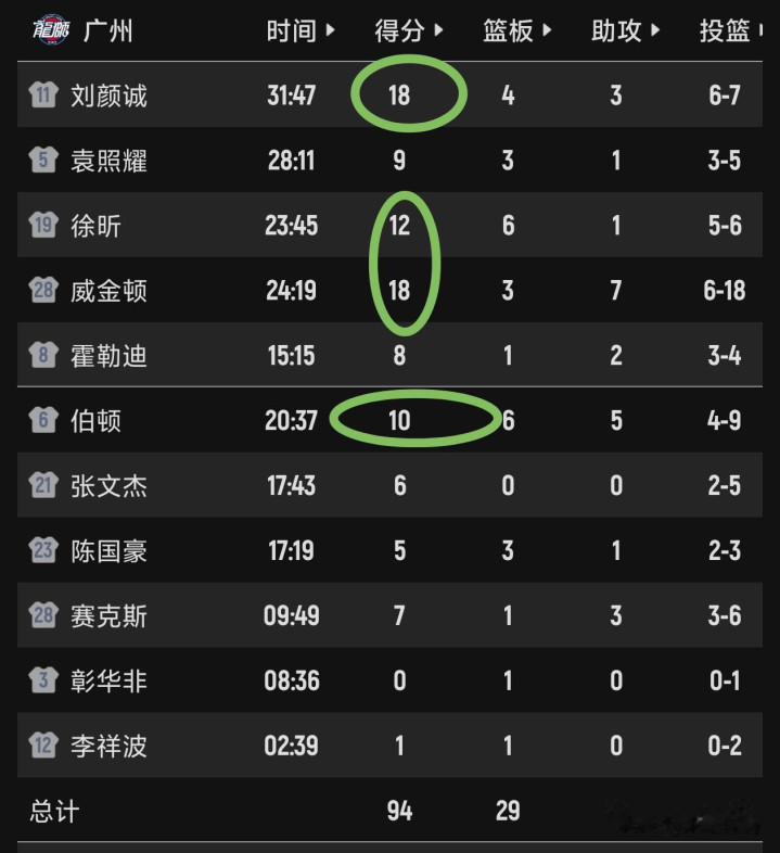 而反不雅广州队得分上双的,也就惟有刘颜诚的18分,徐昕的12分,威金顿的18分以及伯顿的10分,尽管也有四个,但在个东说念主得分方面,照旧和北京队差了一大截!