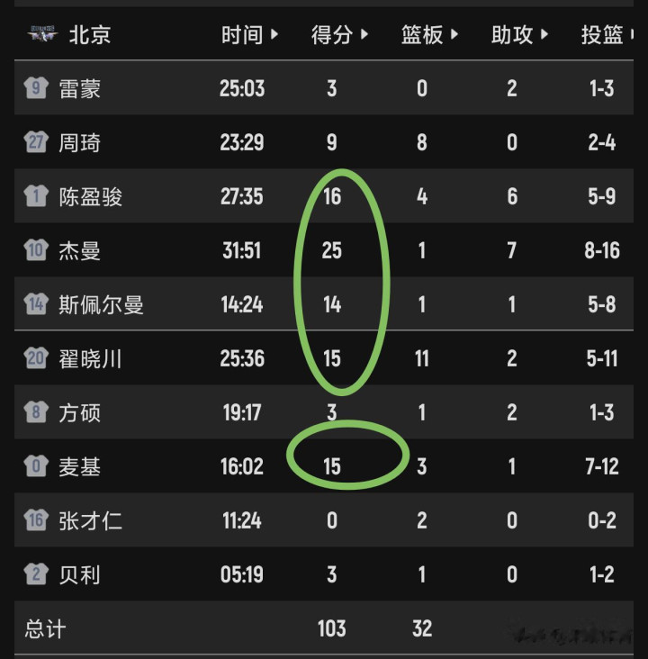 在得分方面,北京男篮也更具有上风。这场比赛全面吐花,其中上双的就有五东说念主,包括陈盈俊的16分,杰曼的25分,斯佩尔曼的14分,翟晓川的15分,麦基的15分。除此以外,还有周琦的9分。