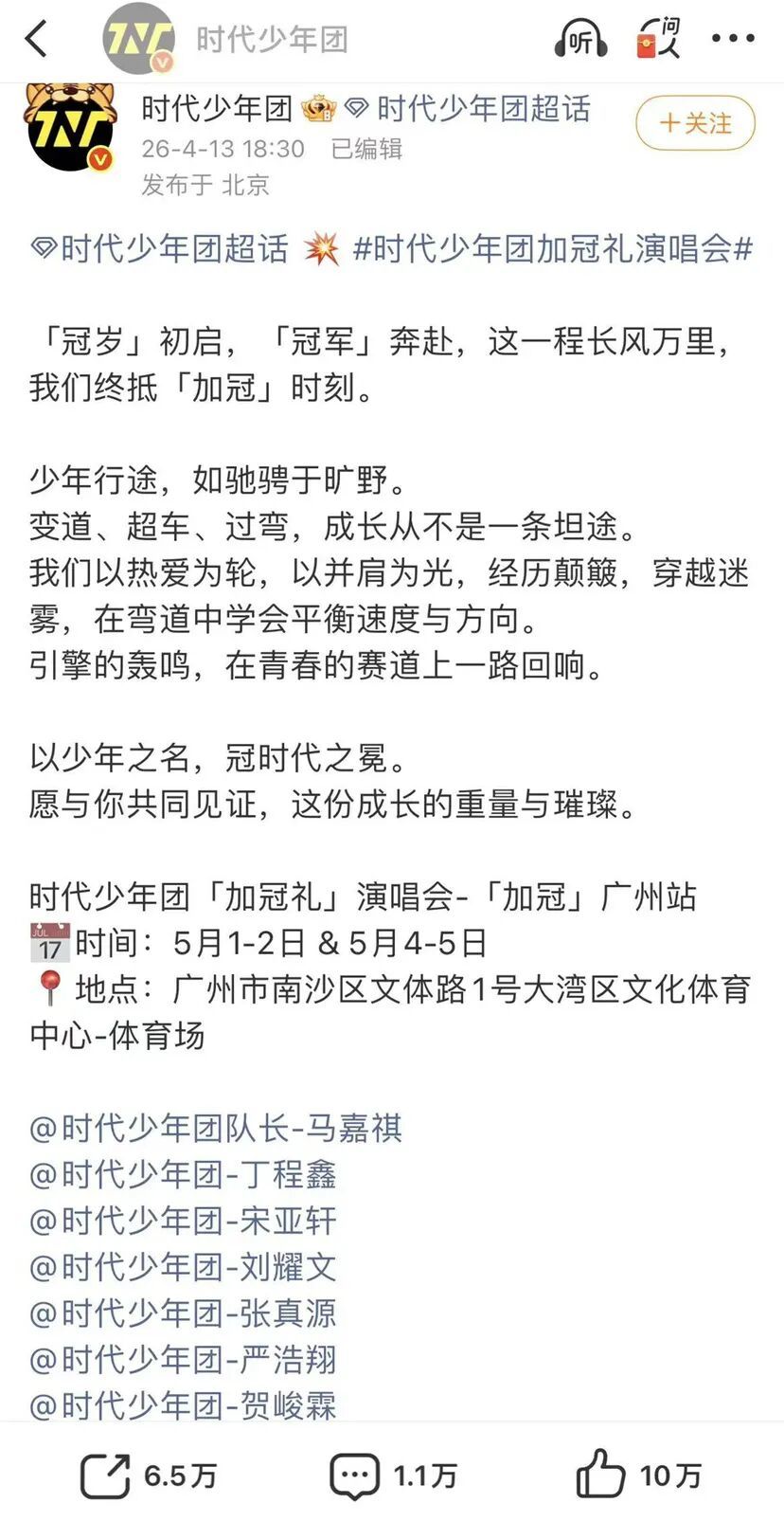 b体育官方app下载 时期少年团厚爱官宣广州演唱会:“五一”假期连开四场