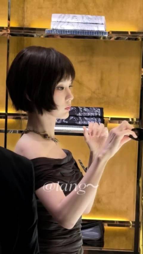 仔细看这个短发果真很有端庄,长度刚好到下颌线,每一刀齐剪得干净利落,莫得过剩碎发。这种恰到公正的剪裁竣工勾画出她的脸型,原来工致的五官显得更立体了,尤其是侧面抽象,