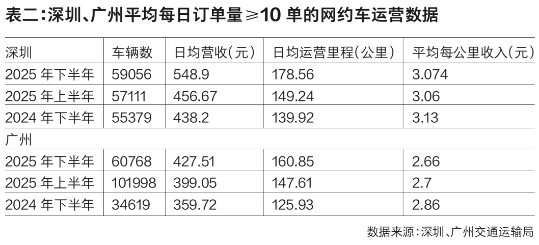 深圳、广州公布的网约车运营数据相似显现,2025年,当地司机通过显耀延伸运营里程来争取更高收入。