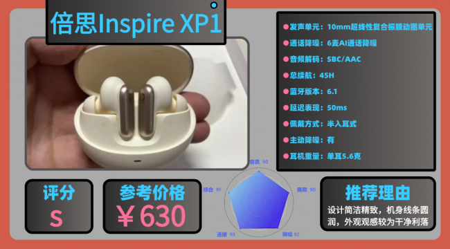 榜单top9:倍 想I nspire XP1蓝牙耳机
