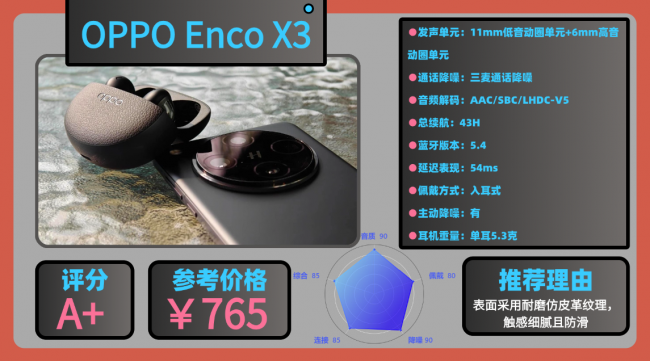 榜单top6:O PPO E nco X3蓝牙耳机