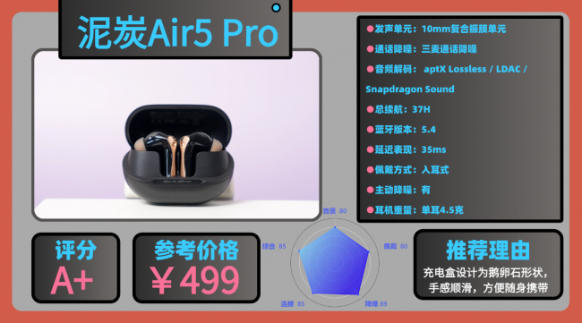 榜单top2:泥 炭A ir5 Pro蓝牙耳机
