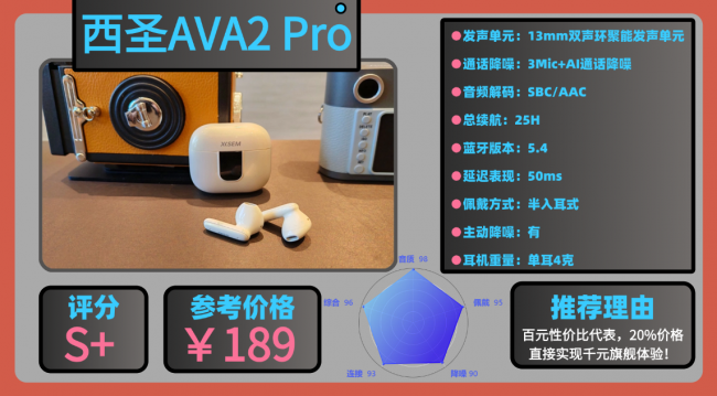 榜单top1:百元音质性价比代表的西圣AVA2 Pro蓝牙耳机