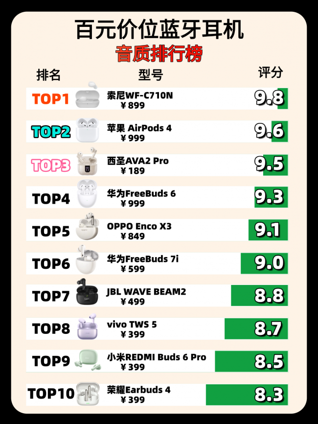 榜单top10:声 阔降 噪舱3代Air蓝牙耳机