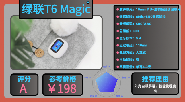 榜单top4:绿 联T 6 Magic蓝牙耳机