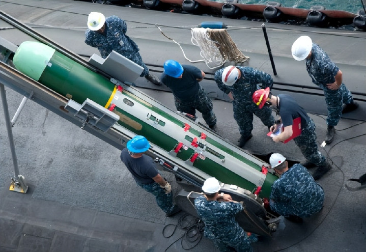 MK-48重型鱼雷的威力在于它哄骗声导锁定螺旋桨杂音,在舰底引爆气泡,巨大的冲击波能将整艘军舰从中间撅断。