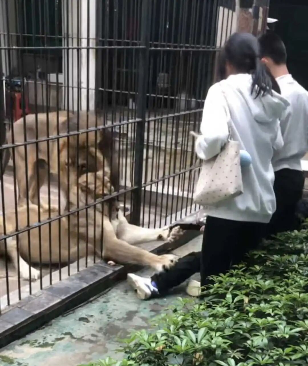 在视频中,一女童隔着铁笼遭到一头狮子遑急小腿,一度被狮子收拢往笼子里拖拽,险象环生。有东谈主称这一幕发生在汕头中猴子园动物园内。