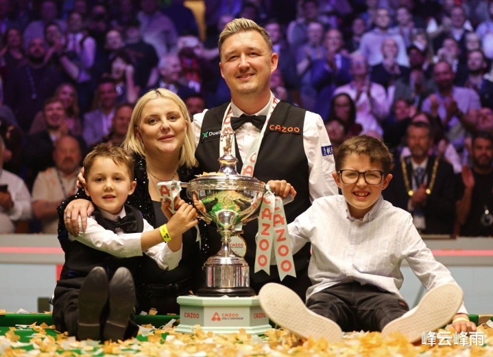 凯伦·威尔逊在2024年获取斯诺克世锦赛冠军后与家东谈主合影