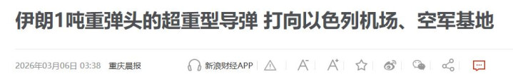 最近,伊朗场所还是参预第六天,伊朗的反击也缓缓升级,从之前大边界打击好意思军基地,到咫尺聚焦于以色列境内规划,反击还是进行到了第19轮,而咫尺伊朗也拿出大杀器,用1吨重弹头导弹打击以色列。